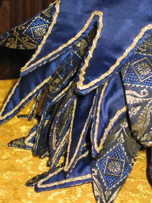 ein andermal die Brokatseite aussen ist. Ringsrum hat der kreisförmige und doppelt genähte Chaperon über 50 Zaddeln.