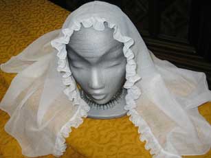 Die Pfalzgräfin Beatrix bei den Agnes-Bernauer-Festspielen brauchte für eine Szene eine Reisegugel, welche sie natürlich prompt und entsprechend edel von mir auf den Kopf geschneidert bekam....