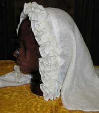Auch dieses zarte Wesen trägt eine Art Kruseler über der Hörnerhaube.